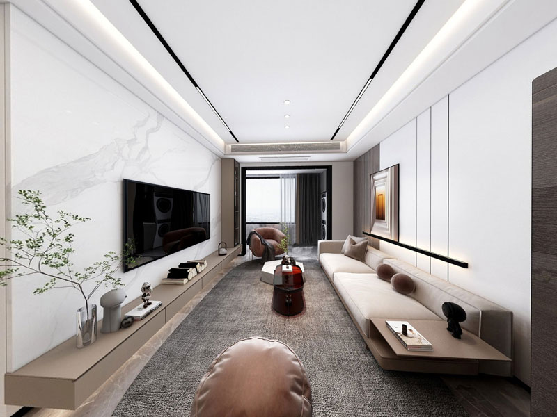 客厅整体色调选择十分简洁,由上至下由浅至深的色彩搭配燃烧空间视觉更稳重,敞亮又自然。