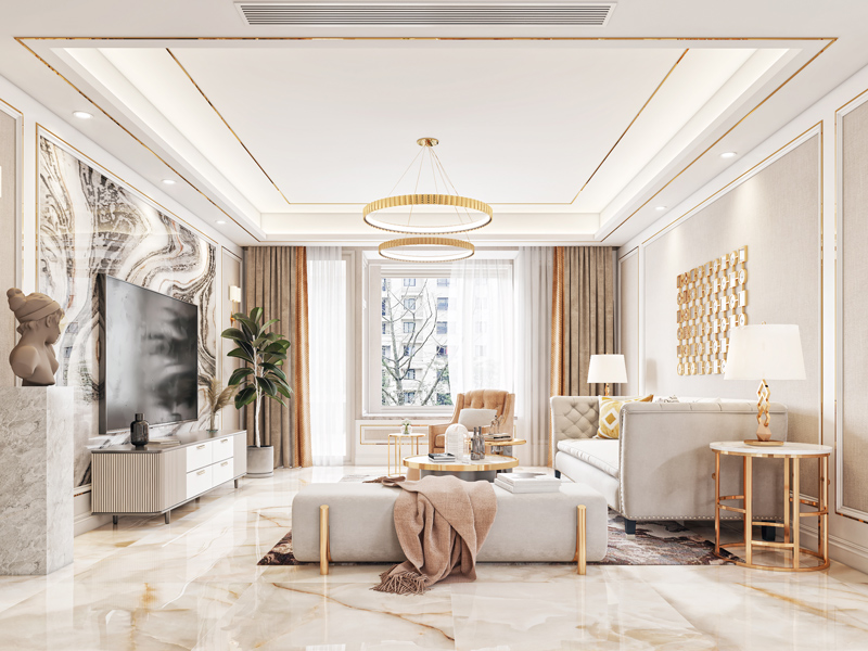 本案例风格定位于现代轻奢风,通过金属元素营造出精致时尚的空间气质,赋予生活大气奢华感。