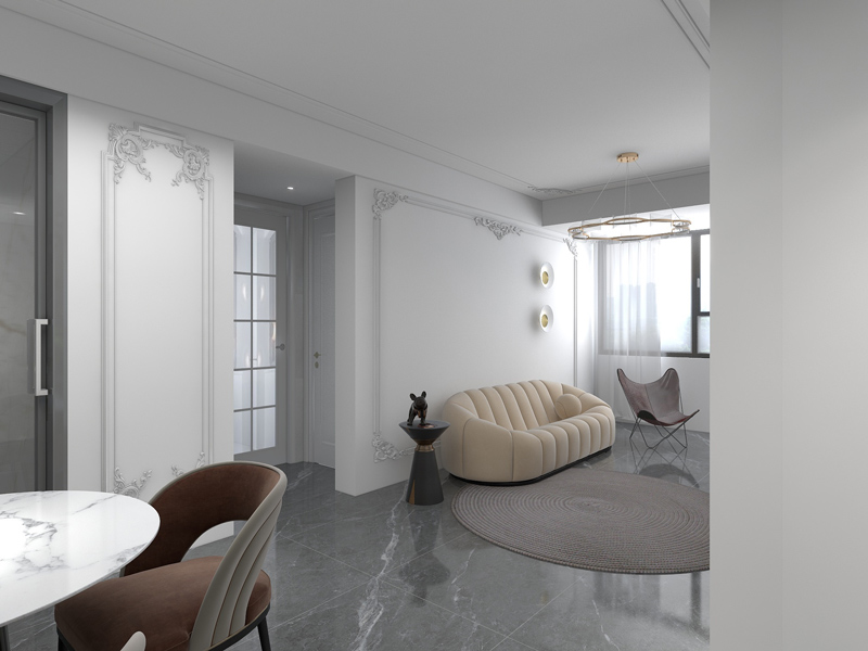 本案例风格定位于简约风,采用恰当简洁的设计,即使是有限的面积也能呈现出通透理想的空间效果。