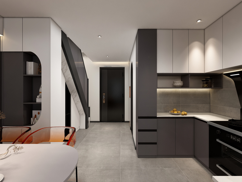 厨房区域开放式设计让整体更宽敞,避免压抑,美观大气视觉更饱满,动线便捷,提高生活效率。